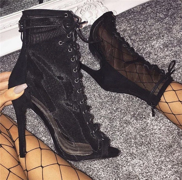Mesh Open Toe Booties